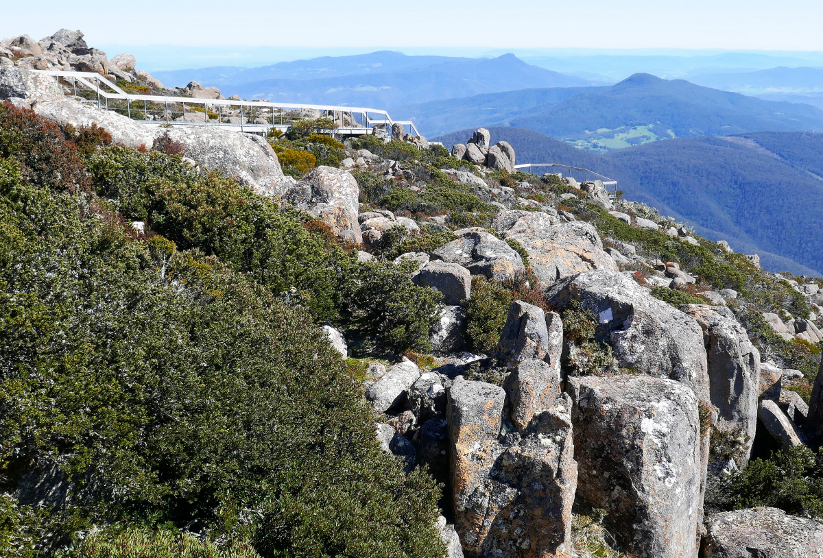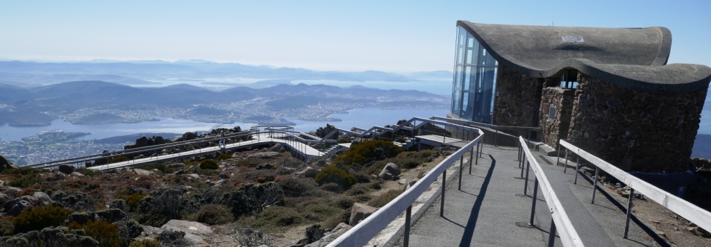 The photo above of the lookout shelter also gives a good idea of the boardwalks that are available these days to explore the top of the mountain without breaking ankles on the many boulders. Over our few days staying in Hobart, we spent time exploring the waterways to the south of Hobart so our trip to the top of Mt Wellington/Kunanyi was very useful for reconnoitering our future drives.