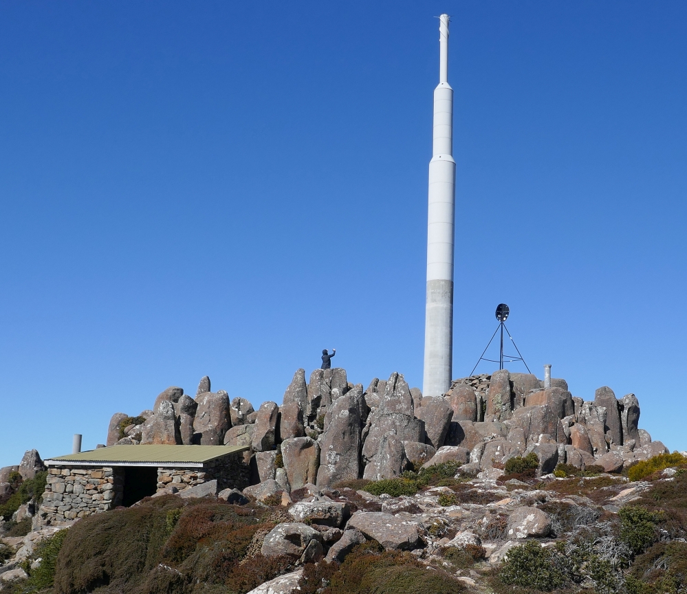 The photo to the left shows the main radio and Television transmitter on the mountain, situated behind the lookout building.