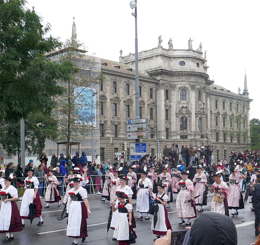 We were in Karlsplatz between the fountain and the main road opposite the Justice Palace in September 2022 and just happened to time our visit with the Famous Munich Beer Fest. One of the major features of this event was the day of the big parade where Munich citizens either joined in with their local community group and or their local Beer Hall group and walked along the main streets of Munich to the Oktoberfest, held in the city’s fairground, the Theresienwiese. It is a 16-18 day folk festival that has been held in Munich since 1810. It attracts up to 6 million visitors a year.
