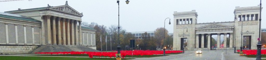 From this U-Bahn station it is a short walk down Luisenstrasse to Konigsplatz (The King’s Square), one of the most interesting places to visit in Munich. It has everything; sweeping views, wonderful architecture and is a place that still holds the history of some of the most complex events of Munich’s past. The first stunning building encountered on arrival at the King’s Square is the Propylaea, originally designed as a formal city-gate for Munich. It was the plan of Ludwig I (1825-48) who was a big fan of Greek architecture and history. This association was encouraged by the fact that his second son Otto was chosen as the first King of Greece when that confused country became a monarchy in 1832. This was at a time when newly independent countries in Europe felt the need for an hereditary monarch and so they had to look abroad for individuals with the correct ‘royal’ bloodline. Otto actually served 30 years before he was deposed. The Propylaea was considered by his father to be a recognition of the wonders of ancient Greece as well as his son’s status as King of this famous nation. Ludwig I’s grave is in St Boniface’s Abbey which is directly behind the first building on the right as you walk down the paths away from the Propylaea.