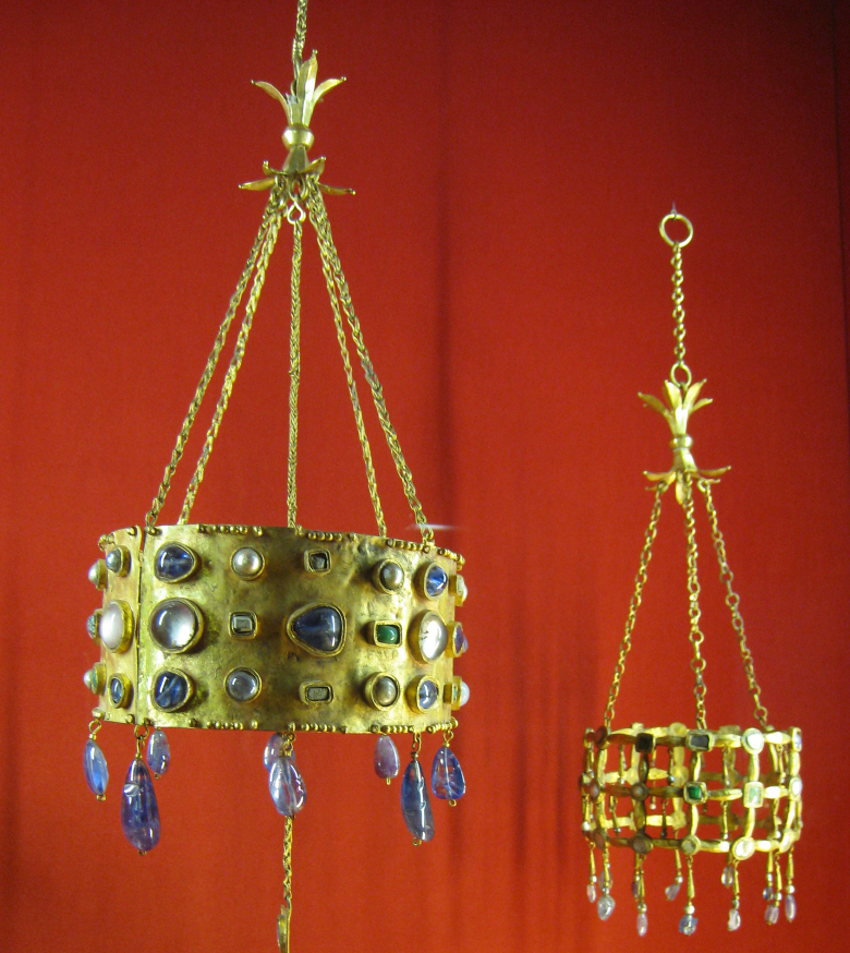 There are many exhibits in the Cluny Museum to take up a good couple of hours strolling around the displays. Just to pick two items I was fascinated by, note the ‘votive-crowns’ (Image on left below) that were created in the 7th century in Spain and disappeared unknown years later before they were dug up in an orchard near Toledo in Spain in the middle of the 19th century. The collection is known as the Treasure of Guarrazar. Some of the items in the treasure collection went to the Musee de Cluny, others to the Archaeological Museum of Spain and some of course were stolen and disappeared back into the unknown hands of treasure thieves!