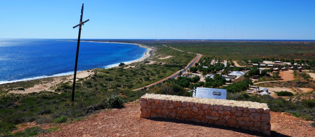 The next day we were due to leave Yardie Homestead and head down the coast to Coral Bay. As we were on the North-West Cape promontory, the quickest route to Coral Bay was by the direct road that hugged the coast all the way south. The problem for us was that it was a dirt road, as were the other roads heading out to the main highway through the Cape Range National Park. Our only route was back up through Exmouth and down Exmouth Road to Coral Bay. As we had to go back along Yardie Creek Road through Exmouth, this took us to the top of the peninsula before turning right, past the Harold Holt Communication Station. It is at this point there is a high promontory, Vlamingh Head, on which is built a lighthouse and I was keen to see it before we left the area. It was not only the lighthouse that was significant…around it was an information display area that told much of the history of the district as well as providing great views up and down the peninsula.