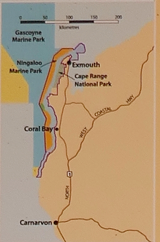 While Exmouth is the main town on the North-West Cape, it wasn’t our destination for the next three nights of our stay. Our drive was up the eastern coastline of the Cape, passing the airport at Learmonth that was a significant part of Australia’s defence during World War 2. From there we drove through Exmouth, around the tip of the Cape and back down the other side of the peninsula to Yardie Homestead Caravan Park, 32 Kms from Exmouth. The Homestead is perfectly positioned for those wishing to pursue the delights of the coastline of Cape Range National Park where the famous Ningaloo Reef stretches for 260 kilometres and is Australia’s largest fringing Coral Reef.