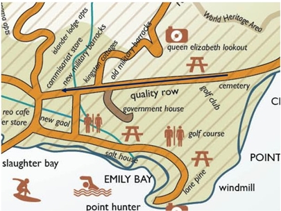 The houses along Quality Row were all built to the same design during the time of the Second Settlement. Number 9, Quality Row, built in 1839, once housed the engineers who managed the Goal’s buildings. Like the other houses on this street, it was renovated in the 1980s and now houses the Research centre for those looking for information on descendants who may have lived on Norfolk or for those tourists looking for more info on the island’s history. We strolled through the centre and the displays were excellent and very informative.