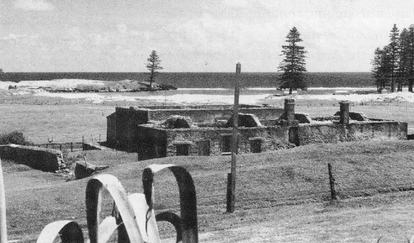 When I was flying to Norfolk, the guy next to me in the plane explained that he was having a week on Norfolk to play golf. He came over most years to play in a tournament which he confessed he had won a number of times. When seeking a photo of Government house, I have to admit that I trespassed on one of the course’s fairways; there can’t be too many golf courses in the world built within a World Heritage Site next to a Government House! It is a nine-hole course that is built at the end of Quality Row and its Club House and Pro Shop are also heritage Buildings. Prior to 1856, these building was listed as belonging to the local Stipendiary Magistrate. The photo on the right above shows the buildings still in ruins around 1950.