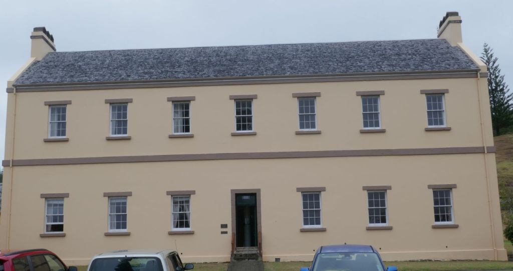 From the cemetery we drove our car down to the far end of Quality Row and parked opposite the New Military Barracks. It is confusing for the average tourist to get their head around the need for two military barracks for a small convict settlement on Norfolk Island. The new building for housing guards began in 1835, a year after the ‘old’ military barracks was completed. When convicts are treated in the way they were on Norfolk Island, it is not surprising that the administrators were fearful of a convict uprising. Today these buildings are used as Norfolk Island’s Administrative Centre. The colourful canons flanking the steps are from HMS Sirius that disastrously sank in 1790 on the reef that could probably be seen from the top floor windows of the New Military Barracks