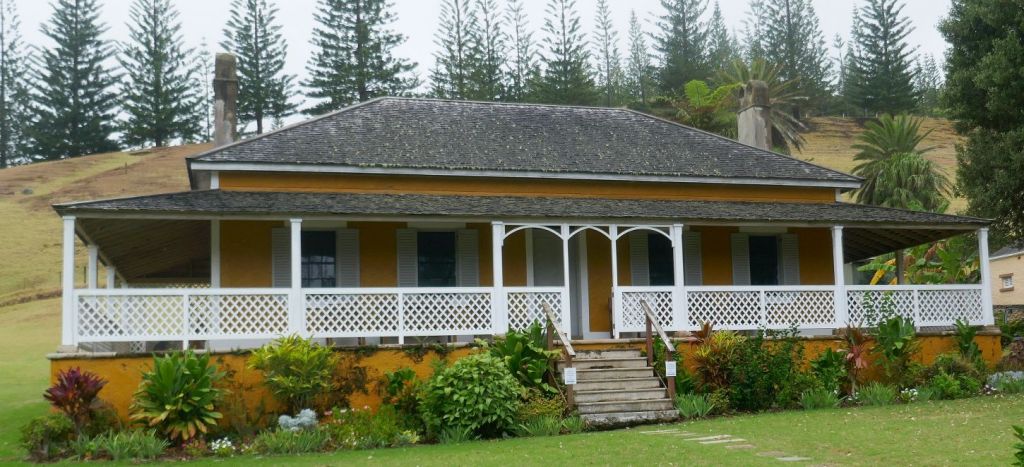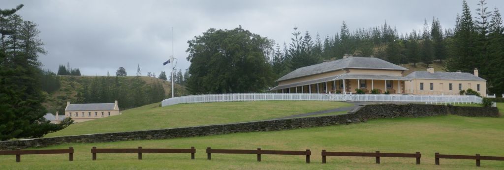 Another major building on Quality Row is Government House which is the official residence of the Administrator of Norfolk Island. This fine Georgian building was built in 1829 and is the most intact remaining government house building in Australia. We were just over the road from Government House and its driveway when we came out of the Research Centre house but there was no direct line of sight of its buildings. It was only when we went around to the back of Emily Bay that we realised that a short walk gave us access to great views of this lovely building.