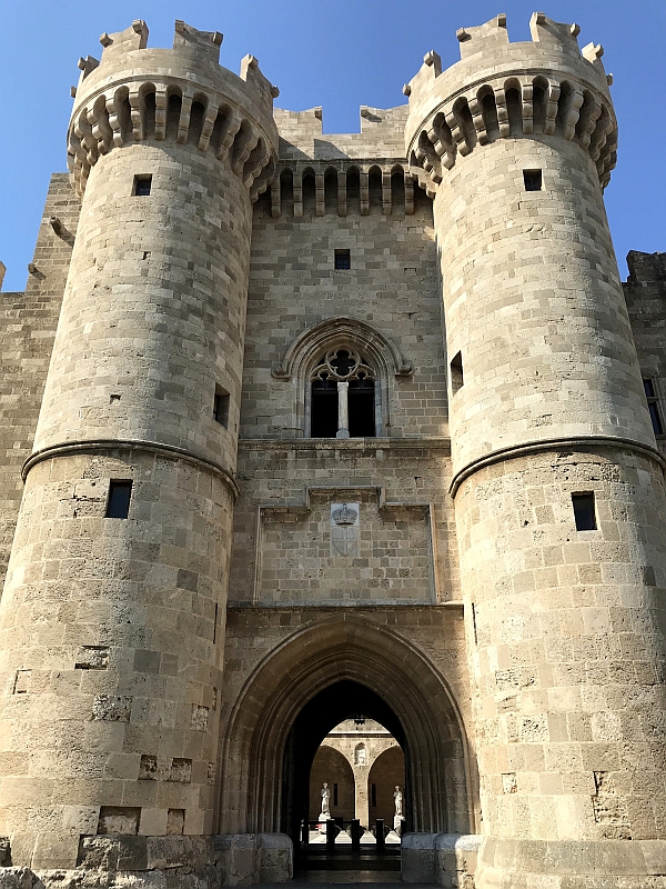 There is a pattern throughout Europe over the millennia where new major buildings (Churches, Castles) are built over the top of previous major buildings. This is the case for the Knights Castle in the Old Town of Rhodes. Recent archaeological study has suggested that this major building was built over an ancient temple of the Sun-god Helios. (This site is also one of the suggestions for where the Colossus of Rhodes might have been erected.) Above these foundations are the remains of a Byzantine Citadel which was also built over when the Knights Hospitaller built this edifice as a palace and Administrative Centre for the Grand Master. Note in Appendix One you will find a Rhodes timeline if you get confused about the ‘layers’ of history that is Rhodes.