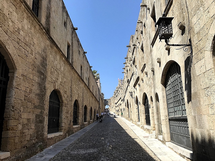 Our hotel (Avalon Boutique) was right in the centre of the Old Town and a one-minute walk from the Street of Knights which crosses through much of this walled town. It was built in 1400 and provided Inns for the different nationalities that joined the Order of the Knights of Jerusalem. The notes made in the UNESCO document about this area are worth noting…“with its Frankish and Ottoman buildings the old town of Rhodes is an important ensemble of traditional human settlement…and building after 1523 combined vernacular forms resulting from the meeting of two worlds with decorative elements of Ottoman origin. All the built-up elements dating before 1912 have become vulnerable because of the evolution in living conditions and they must be protected as much as the great religious, civil and military monuments, the churches, monasteries, mosques, baths, palaces, forts, gates and ramparts.”