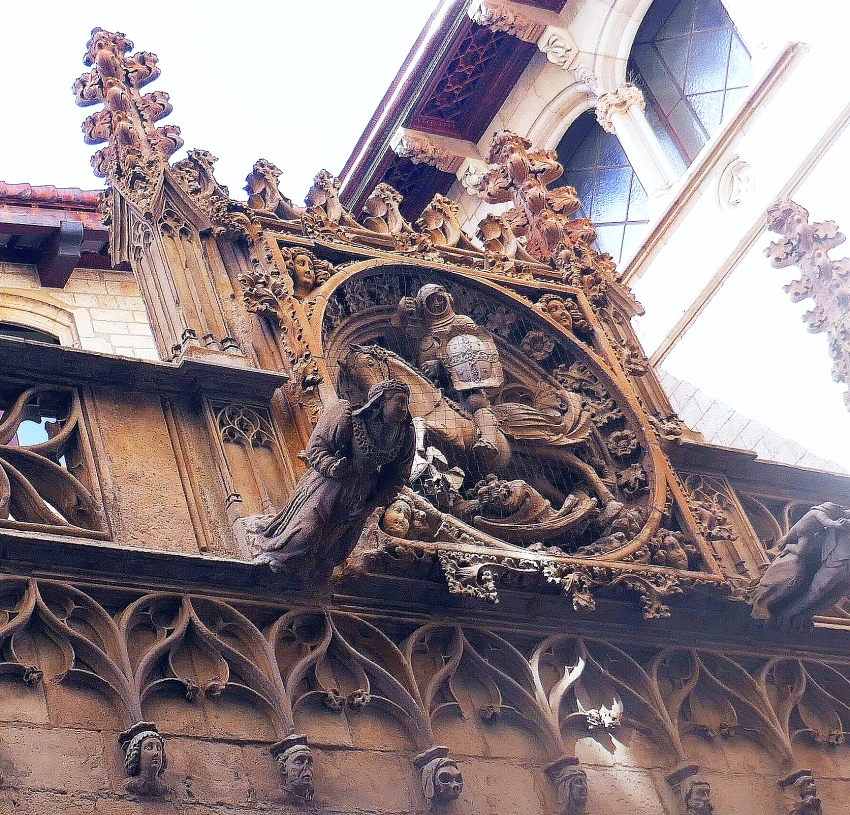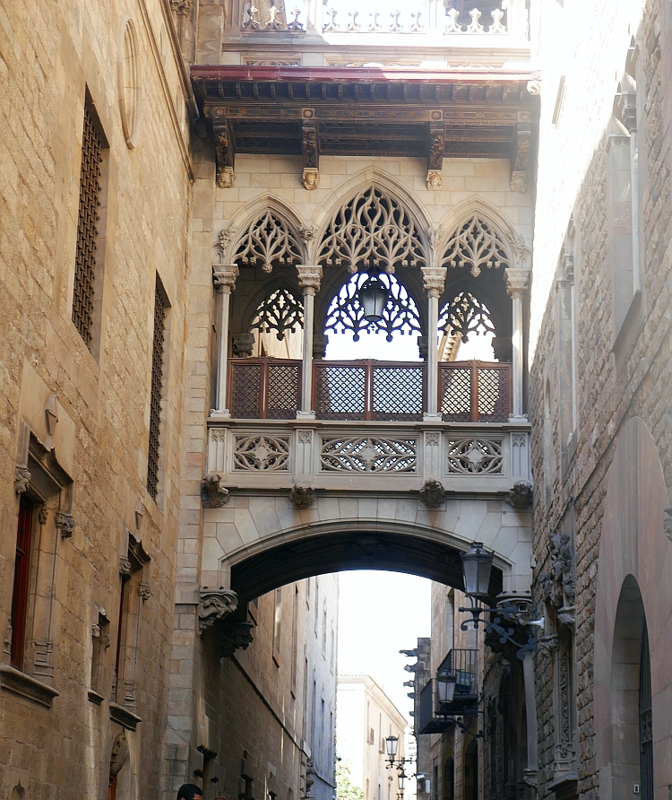We decided we would head back in the direction of the Cathedral along Carrer del Bisbe. We were looking for one of the most photographed sites in Barcelona, the Bishop’s Bridge (El Pont del Bisbe), a Neo-Gothic ‘fly-over’ across the alleyway that heads up to the back of Barcelona Cathedral.