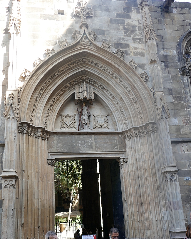 It was well after lunch time when we passed the Cathedral and crossed over the Placa del Rei. This square in front of the Cathedral is apparently where the famous Spanish Monarchs, Ferdinand and Isabella, graciously received Columbus in the mid 1490s after his return from his voyages of exploration to the new world of the Americas. No doubt he reported in on his discoveries which led to the beginning of the new colonies for Spain in South America which brought an avalanche of gold to the Spanish coffers. If we had followed La Rambla to its end near the port, we would have been able to gaze upon Columbus high on his 60 metre column at the roundabout there, built 400 years later in 1888.