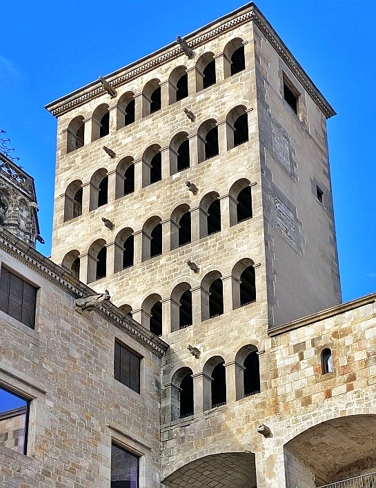 The building to the left below is called Mirador del Rei Marti (King Martin’s Watchtower) on the other side of Placa del Rei next to the Cathedral. It was built in 1302 and was considered one of the tallest buildings in the world at the time.