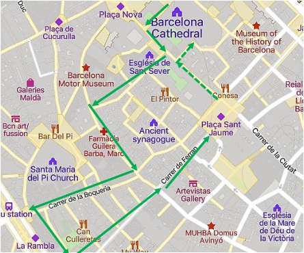 This administrative square, Placa St Jaume (St James), originally had a church here named after St Jaume which was demolished in the early 19th century. Of course the Placa also had more ancient origins as this was where the Roman forum once stood as well as the Temple of Augustus.