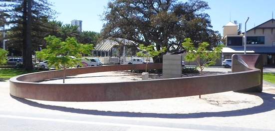 One of the controversies of large redevelopments in the centre of a major city is the destruction involved of what was there before. Originally as part of the tiled area around the Bicentennial Bell Tower, a project had occurred to collect the signatures of the 1999 Year 12 students from all around Western Australia and inscribe them on the tiles around the tower. When the new Elizabeth Quay redevelopment next door to Barrack Square began, the signed tiles had to go and to sooth the criticism that followed, replicas of the tiles were attached to a huge sculpture of a signature ring and this was placed in the centre of Barrack Square nearby to their original location. On our stroll around Barrack Square, we came across the ring and decided it was a curious but cute sculpture involving young people in the public art of the area. As visitors, we had no idea at the time of the controversy that it represented.