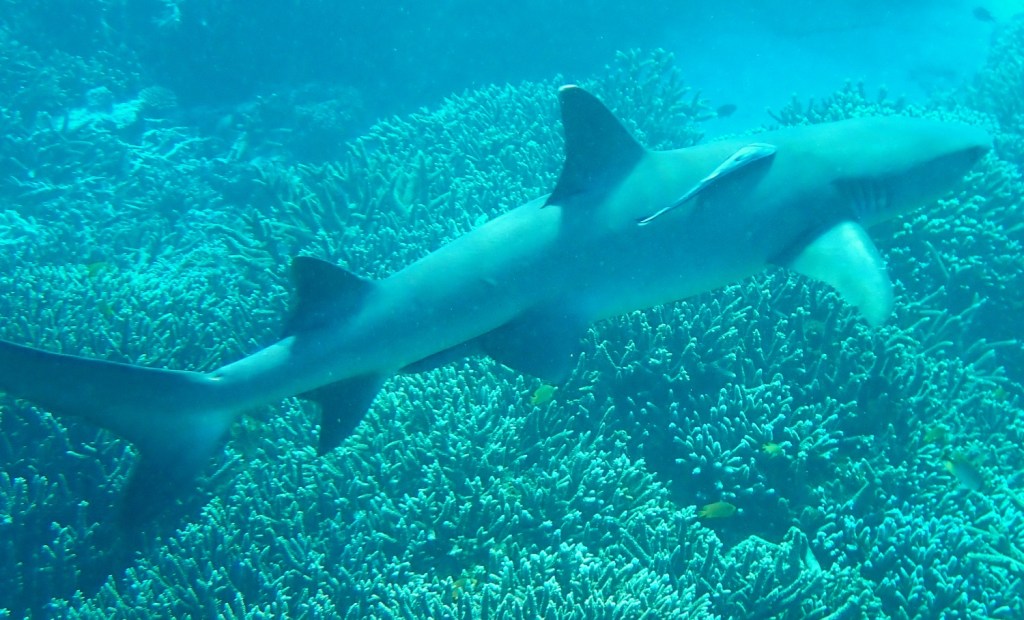 There are also reef sharks on this side of the island but they seem entirely uninterested in the rubber clad humanity swimming around in their world.