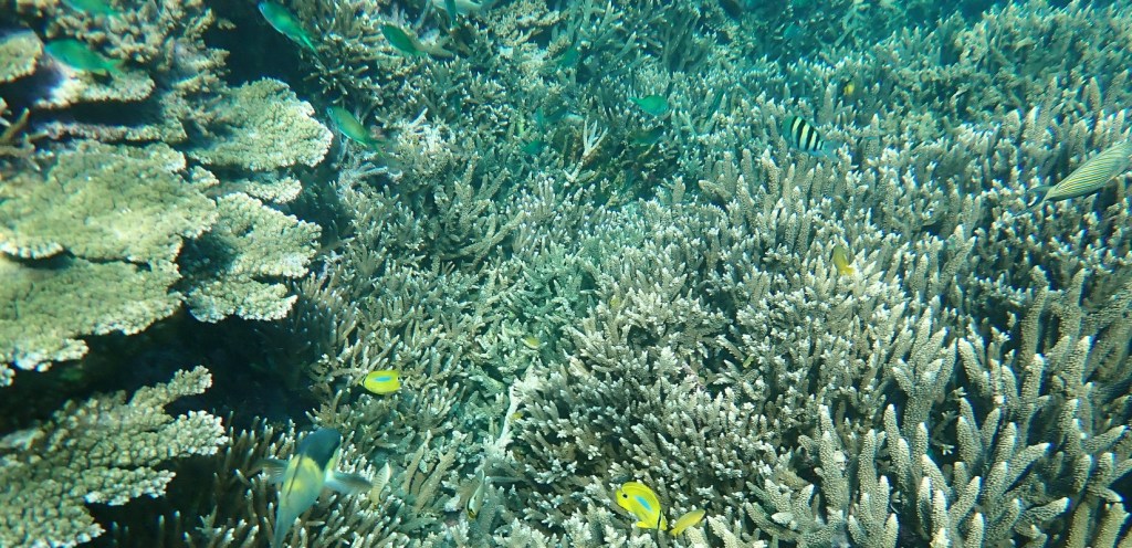 However our poor humour didn’t last long because we were able to get back in the water the next day and see sights like the above section of reef with yellow Angelfish scurrying about.