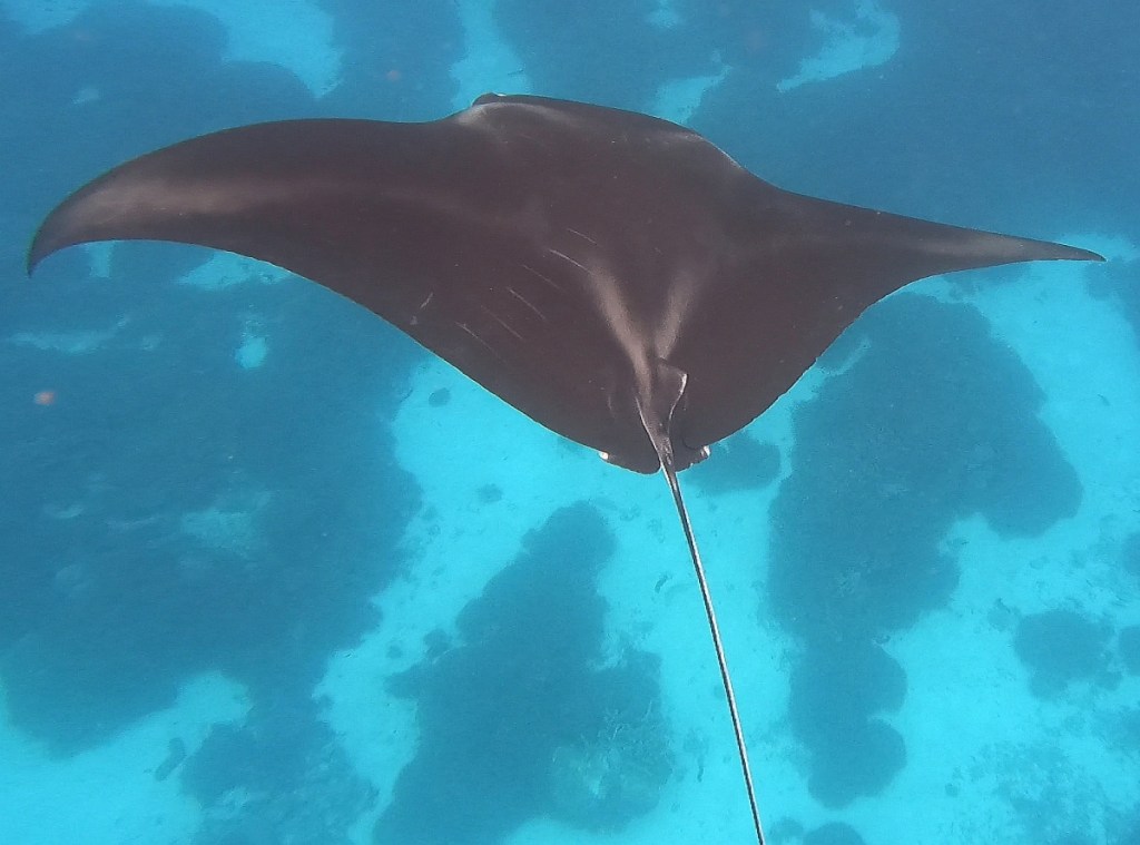 One of the curious behaviours of Manta Rays is their love for getting their skin cleaned. They will visit the Lighthouse Bommie (a submerged offshore reef…see map further on in this blog) and small fishes like Wrasses will gather and clean their skins of parasites and other pests. This is a symbiotic relationship and these small ‘cleaner fish’ will even go inside the manta Ray’s mouth and gills to clean out the parasites. The Mantas get a good clean and the cleaner Wrasses get a good feed. The Fish World knows that the lighthouse bommie is where all this cleaning action takes place so this small reef a little further offshore is where both snorkellers and divers go to watch the Mantas get pampered.
