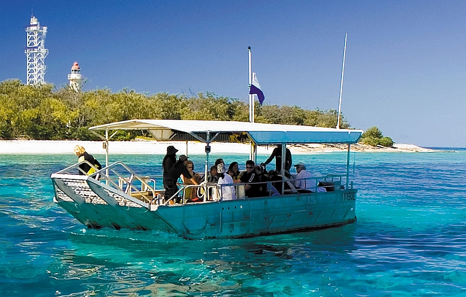 A key part of any visitor’s time on Lady Elliot Island is the glass bottom boat tour that is part of everyone’s package when they come to the island. Everyone is encouraged to do it on their first full morning. The group don their wetsuits and are bused to the lighthouse side of the island and given a tour of the reef side. The hour-long boat trip includes a forty minute snorkel over the reef and if anyone had doubts about the trip to this island, their concerns immediately disappear when they discover the beauty of hovering over a coral reef where masses of fish are going about their daily business.