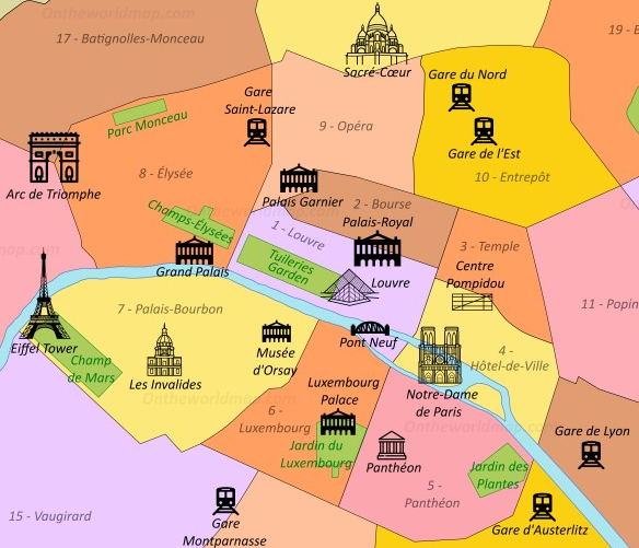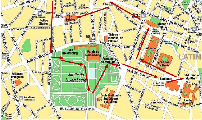 The stroll around Paris suggested by the map above will hopefully provide a more focused tour of this area of Paris than my own first aimless stroll around these two famous Parisian districts.