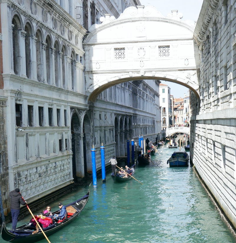Casanova’s prison wing was reached over the fully enclosed Bridge of Sighs and today this prison bridge is a favourite ‘sight’ round the corner of St Mark’s Piazzetta. Folk hurrying to catch a ferry from San Zacarria have to jostle with the crowd on Ponte della Paglia which crosses the canal at the back of the Doge’s Palace; for some reason that story of the famous lover escaping from prison requires a lot of attention from the many visitors gazing at the Bridge of Sighs and the canal it crosses.