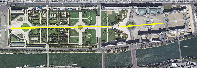 The image below shows the layout of the wings Louvre Museum today, reaching to the area of the Place du Carousel. The centre of the first view from Place de Carousel is a triumphal arch built between 1806-8 to commemorate the military victories of Napoleon over Italy and Austria in the previous years.