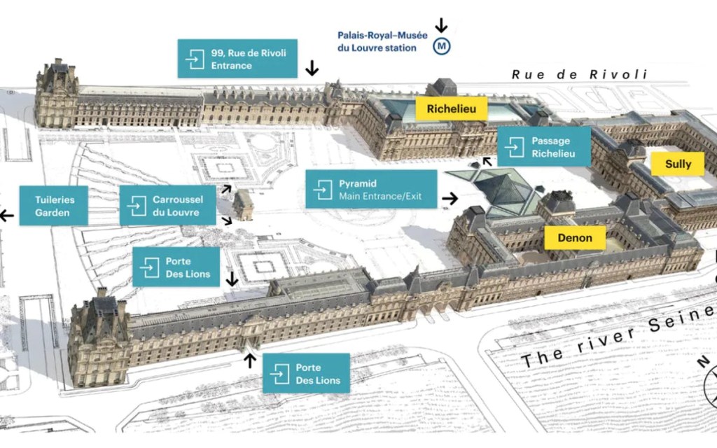 Perhaps the most famous museum in the world is the Louvre, found in the First Arrondissement (District) of Paris on the right bank of the River Seine. Between 1860 and 2020 there were 20 designated districts of Paris and the Louvre and the Tuileries Gardens were to be found in the ‘Premier’ district. Since 2020, the four districts with the smallest populations were amalgamated into one administrative centre which now includes the Louvre, Bourse, Temple and Hotel de Ville. The Metro map on the right gives a good indication of the current extent of First Arrondissement.