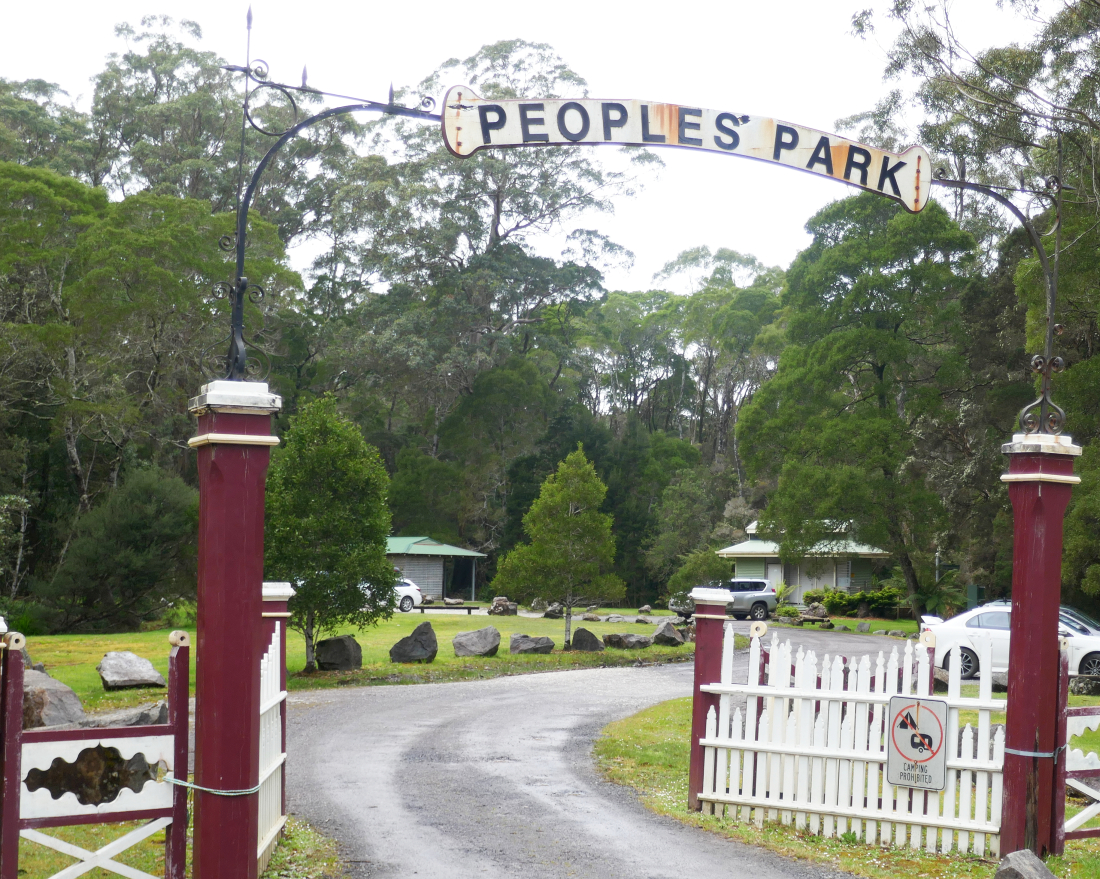We got most of the way around Risby Cove before we realised we were running out of town so we decided we would go back and check out the sign pointing to Hogarth Falls. The sign over the entrance was called ‘Peoples’ Park’ and it housed some pleasant looking facilities such as car-parking, BBQ facilities and toilets! It was a very interesting area having been dedicated as a park for the locals back in the 1890s. Even the sign over the entrance to the park has been much admired since just after Federation. Apart from all the social facilities, we discovered we had encountered another one of our favourite features of Tasmania, one of its great Short Walks. The usual sign explained what we could look forward to…“An easy creek-side stroll beneath towering forest trees to the delightful Hogarth Falls. Interpretation signs along the way describe the experience through the eyes of children from Strahan Primary School.” It was, 1.2 km one way walk and the return trip would take 40-50 minutes.