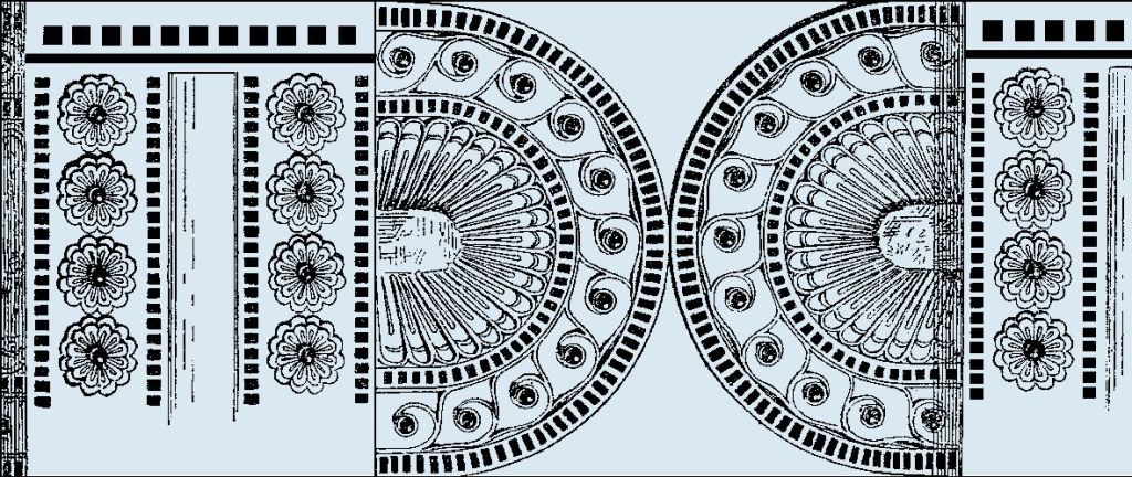 The image below is the reality of the Tiryns site today where nothing is left of the palace or even the rubble that replaced it for another 2000 years. In Appendix 1 there are two small remnants that give some idea of how beautiful the interior of the Tiryns palace would have looked like. In the second image found in the appendix, the ancient design was found in the vestibule leading into the Tiryns Megaron.