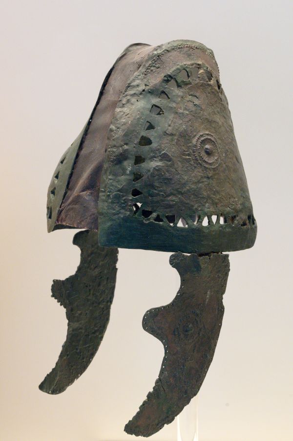 A significant number of artifacts from Tiryns can be found in the Archaeological Museum of Naphlion which is housed in the old Venetian Barracks in the central square of that town. On the left below is an ancient battered helmet found in Tiryns that appears to be a ‘knight’s helmet developed perhaps 2500 years before the ones we are familiar with from medieval suits of armour. The prize exhibit to be found in the Naphlion Museum is the complete suit of Mycenaean armour made from bronze. It was unearthed at Dendra, 15km from Mycenae, almost on the road to Tiryns and is believed to be round about 3500 years old today. Perhaps being the armour being made of bronze was the reason these knights were no match for the iron wielding Dorians that are one possible cause of the disappearance of the Mycenaean culture. More evidence of Mycenaean soldiers wearing armour that we would normally associate with the Middle Ages is to found on a Mycenaean bowl that is to be found in the Archaeological Museum of Athens.