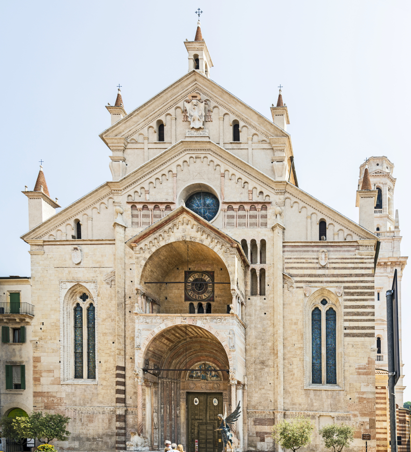 The Cathedral of Verona is dedicated to Santa Maria Matricolare (St Mary of the Assumption). Just like the previous church on the site of Santa Maria Antica near Piazza Signori, the two previous churches built on this site were destroyed by the same earthquake in 1117 CE; these early Churches were associated with St Zeno, the patron saint of Verona. The rebuilt Duomo was consecrated in 1188, constructed in the Romanesque style, the architectural style of Medieval Europe that particularly like semi-circular arches.