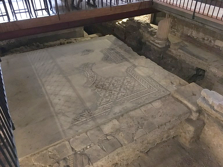 The site of the Duomo is in fact a complex of buildings, one of which is the small chapel dedicated to St Helen. It is of great interest because it sits over the site of the first Christian Church in Verona, consecrated around 362-380. Another church was built over the top of this church which is the one mentioned above that was destroyed by earthquake. Below left is a photo showing some of the mosaic floors that have survived from the early churches on this site.