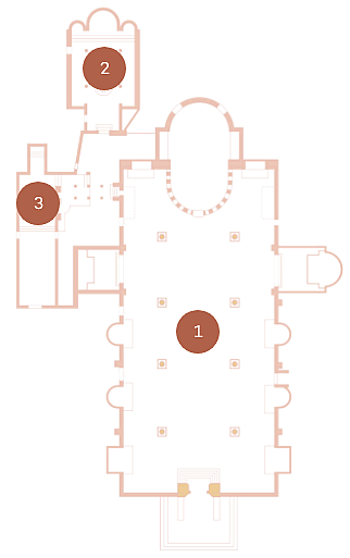 1. Cathedral 2. Baptistery 3. St Helen’s Chapel & Archaeological excavations.
