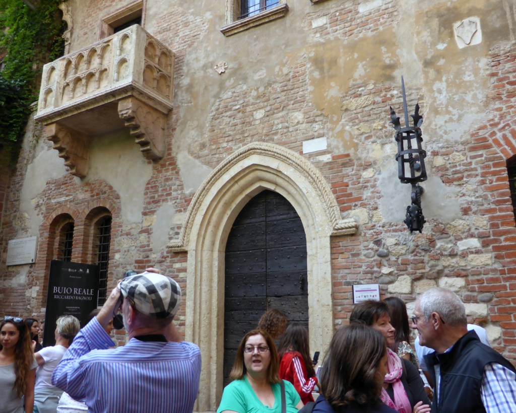 It was quite accidental that our little group of Australian travellers found ourselves in the small city of Verona in Northern Italy. We were on our way further north to spend a week touring around Lake Garda and our tour leaders had invited us to meet them in Verona for the pick-up to take us to the small town of Malcesne on the edge of our lake destination. In the political scheme of things in Italian power struggles, Verona was a small fish, particularly when compared with Venice, its famous neighbour about 115 Kms east on the coast. However, it was a small coincidence in world history that meant the English playwright William Shakespeare came across a book of Italian ‘novellas’ and given that he was great with words but not so great on plots, he ‘borrowed’ the story about two lovers from Verona in Italy which was a town that few people in his first English audiences in the 1590s would have heard of. The story of Romeo and Juliet, the ‘star-crossed’ teenagers who die for love in his play, is a basic human story that most of us have either read, seen the movie or watched as a musical that follows the conflict between fighting tribes and lovers caught in between. The problem for Verona as a tourist destination today is that there is little evidence that Romeo and Juliet ever lived in Verona. The original story, a ‘novella’, was clearly an early work of fiction! As a result, sites in Verona claiming to be associated with the lovers’ story need to be taken today “with a grain of salt”.