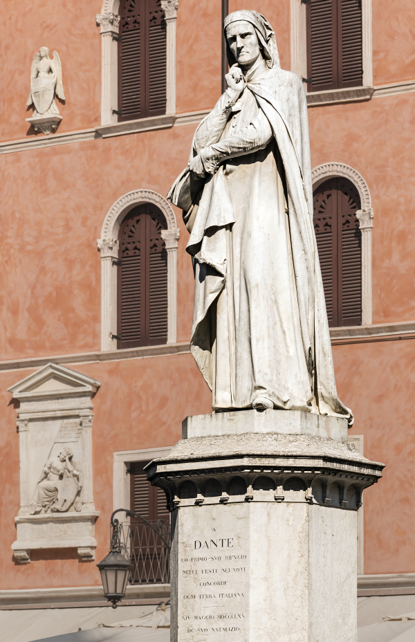 Dante’s Statue and Palazzo Domus Nova in Piazza dei Signori.