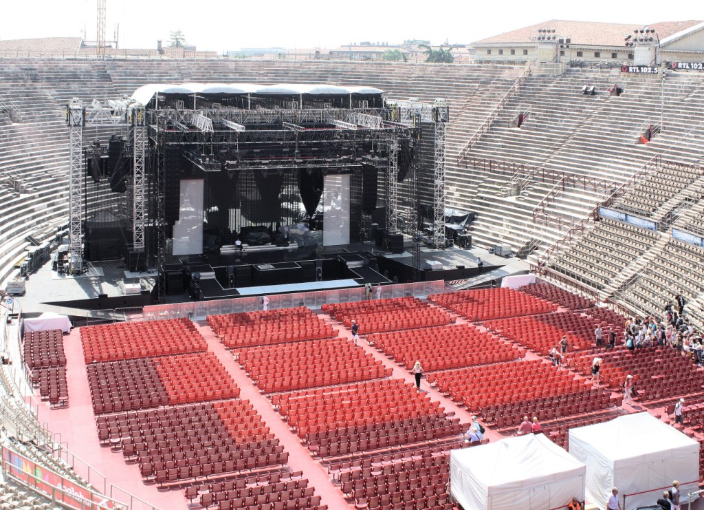 Our destination was of course the Roman arena and it was well worth the walk. It was a beautiful building which probably explains why it is amongst the best-preserved Roman amphitheatres in Europe. It was built towards the end of third century CE and while it has lost significant parts of its outer wall, it is still in regular use; its 44 rows of seats can accommodate 22000 spectators. This is where the Verona Opera Festival is held in July/August and we arrived in town on Sunday 23rd August! Surprisingly there were tickets available that night for the very famous opera, Aida, that was set in the Old Kingdom era of Egypt.