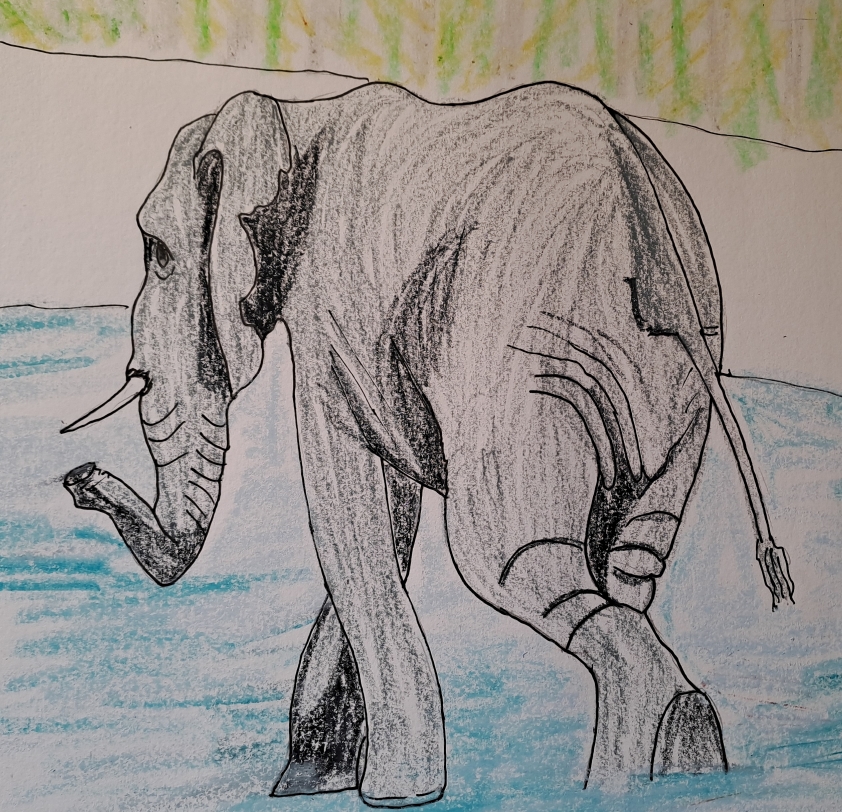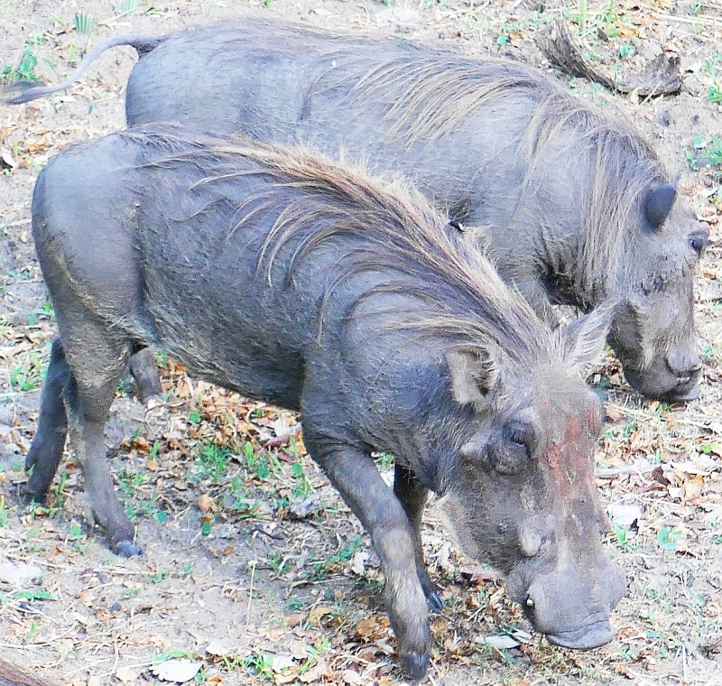 Our destination was a private game lodge built in the Zambezi National Park. Our accommodation consisted of tented ‘lodges’ with thatched roofs built on raised decks that over-looked the river. Both inside and out, these rooms were both very attractive and comfortable. Below left is a view of our verandah with a plunge pool to cool down at the end of our busy days. Our firsts guests that came to visit us not long after our arrival weren’t the most attractive of creatures but they were the first Zimbabwean warthogs we had ever met.