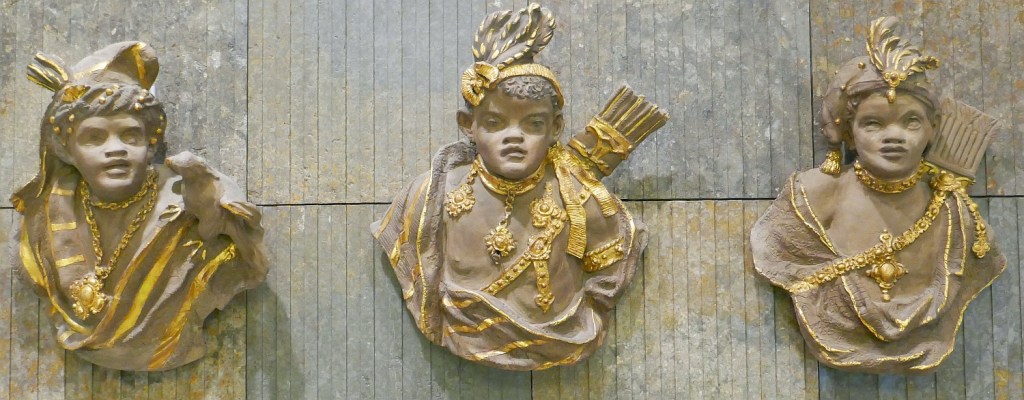 In the foyer of our hotel there was a curious sculpture on the wall over the hotel’s main entrance which seemed a little out of place. It showed the sculptured heads of three Abyssinian (Ethiopian) monks who apparently had visited the town of Augsburg towards the end of the 15th century. The story goes that they were looked after by the original hotelier on this site because it was a very cold winter and before their departure in summer, their portrait was taken. After I questioned one of the hotel’s assistants about these curious visitors, she very kindly gave me a history of the hotel. It included a list of 18th century guests that included such luminaries as Casanova, Wolfgang Mozart and Goethe. It also noted that like so many buildings we encountered on the way through Germany, this hotel, except for the façade, was burnt to the ground by aircraft bombing in 1944.