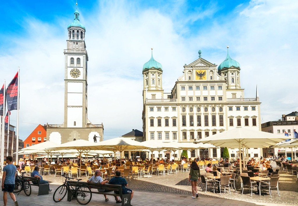 We probably had our longest day drive from Rothenburg to Augsburg on the 13th day of our trip from Oslo to Southern Germany. We arrived mid-afternoon in Augsburg and discovered that we were in fact in a reasonably large city of around 300,000 citizens. Our home for the next two nights was Hotel Maximilian in Maximillian Strasse; from our first parking spot in town, it looked like the main street of the city. Given we had been privileged over the last two weeks to stay in much smaller medieval towns, the shock of modernity hit home to discover we were back in a complex urban space that appeared to be being rebuilt before our eyes. The sound of jackhammers was everywhere. It was the most inauspicious start to a visit of any so far on our trip but we discovered that after two days exploring Augsburg, we realised we were in a very impressive Bavarian city.