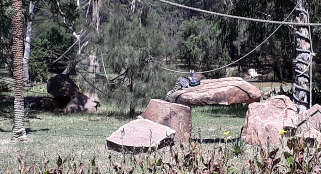 The good thing about the Siamang enclosure was that we got an excellent view of these gibbons without trespassing on their territory. This was not the case for the equally entertaining, white-handed gibbons or the ring-tailed Lemurs. Their acrobatics took place on their island but the distance from the fence-line was too long to really appreciate their dexterous life-style.