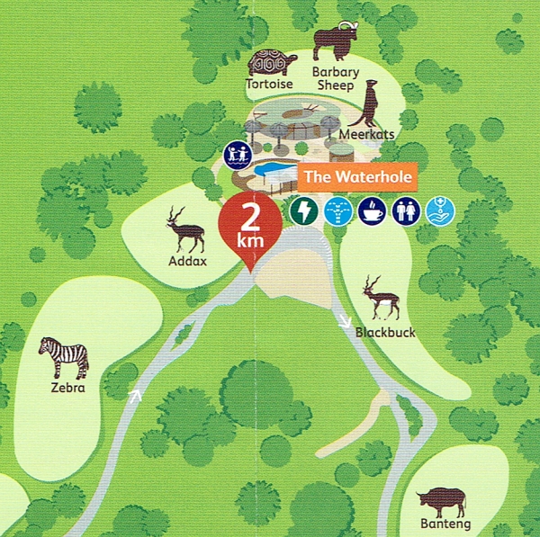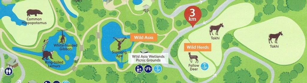 The map of this section of Dubbo Zoo above shows that we were at the 3 Km point in our bike ride journey and were getting close to the Wild Asia Wetlands. Before we reached this island approach to enclosures, there were still two areas that contained species that were new to us called the ‘Wild Herds’ exhibit which is a relatively new section at the zoo opened in 2018.