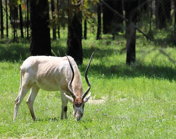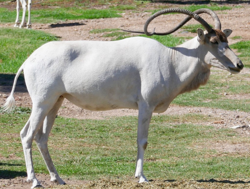 The next enclosure that we stopped to inspect was our fourth species that we had not seen or heard of before. This was the Addax (Addax nasomaculatus), a white antelope that is native to the Sahara Desert to which they are adapted due to their ability to go long periods without water. They form herds from 5-20 led by the oldest female in the group. Although quite common in captivity, the Addax is critically endangered in its native habitat in North Africa.