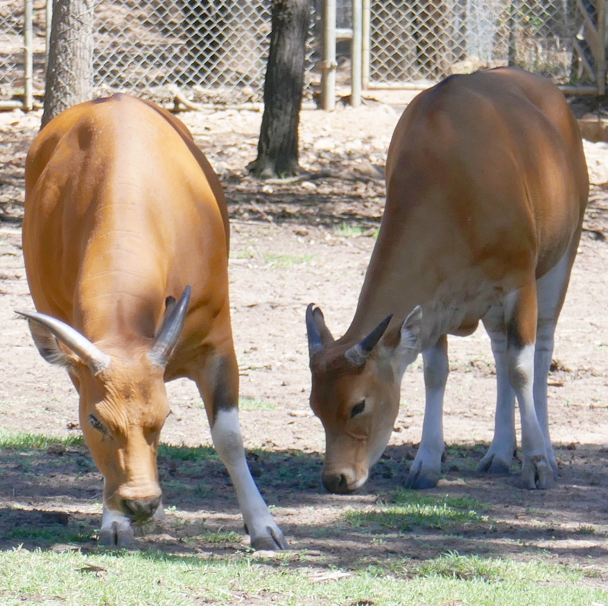 Next door to the Blackbuck is the Banteng enclosure which is a species of cattle, Bos javanicus, that is native to the countries of South East Asia. As wild cattle, they can form herds up to 40 cattle dominated by one male. Curiously, the Banteng exist both in the wild but have also been domesticated in Asian countries for many centuries. Domesticated Banteng were introduced into Australia in 1849 on the Coburg Peninsula in the Northern Territory to supply a British military outpost. When it closed, the Banteng were released into the wild and developed into a feral population that is today up around 9000 individual animals. Contrary to the status of this NT population, the Banteng are listed as endangered in the wild in South East Asia.