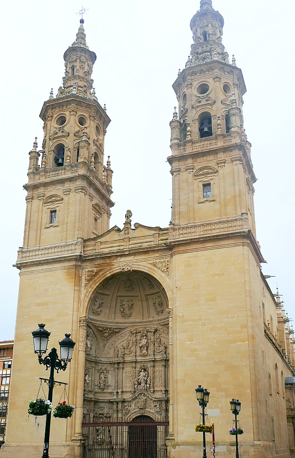 The map to the left shows the route of our first walk around Logrono after we had settled into our hotel. We walked up Sagasta St and turned left onto Calle Portales and within minutes we were in Plaza Mercado admiring the splendid Cathedral of Santa Maria de la Redonda. The ‘Redonda’ refers to the shape of the original church on this site. It was a ‘Romanesque Temple’ built around the 12th century. The cathedral has been modified three times over the centuries.