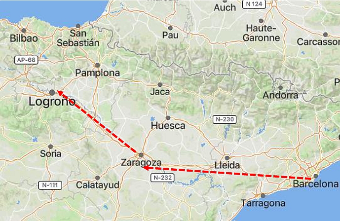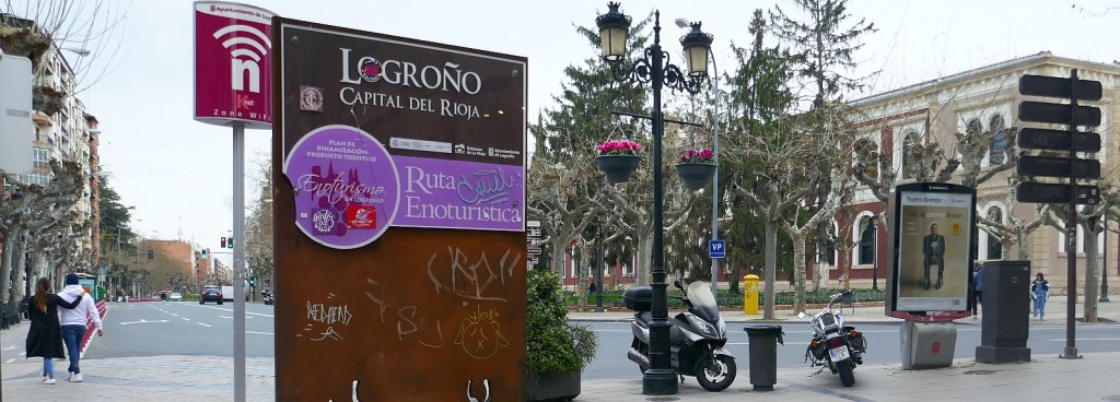 We had booked an Intrepid Tour to lead us along the coastline of Northern Spain with our guided journey ending in Santiago de Compestella. Our guide had met us in Barcelona and spent one day with us in that complex city before we left by train and headed off to Logrono, the capital of the province of La Rioja in Northern Spain. Our train ride took us a little over four hours via Zaragoza. We were met by booked taxis which took us to our hotel, Sercotel Calle Mayor on Sagasta St.