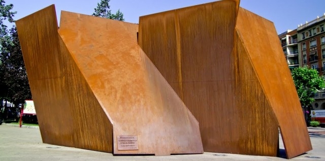 We turned right and walked up the street and found ourselves at another, much larger park, Paseo del Espolon. It was established in the 19th century with a large equestrian statue of General Respartero. There was also a monument there (on left), dedicated to the victims of terrorism from the events at the start of the 21st first century. This was the period of civil war in Spain involving the demands of the Basque separatists.