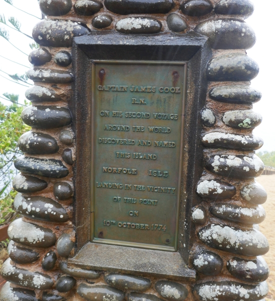 At its widest point, Norfolk is only 5km wide so we were able to cover the distance reasonably easily to reach the Captain Cook Memorial at a headland overlooking Duncombe Bay where Cook landed. He was on his second voyage in search of Terra Australia but went too far south, became the first person to cross the Antarctic Circle (twice) before heading north again on a circuit that took in Norfolk Island, New Zealand and back home again around South America. As for Norfolk, he wrote… “We found it uninhabited, and were undoubtedly the first that ever set foot on it.”