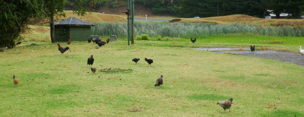 Around the public space next to the ruined watermill we couldn’t help but notice the large number scrawny chickens that seemed to be allowed to roam free in this area without any sight of a home roost. On a bus tour later that afternoon our guide decided to give us a commentary on her distaste for what were in fact feral chooks that roamed Norfolk Island and were a danger for bus traffic. Our companions at the watermill belonged to no one! Even if you’re hungry and decided to catch one and put it in the pot for the evening meal, there is very little meat in the dish or any culinary satisfaction.