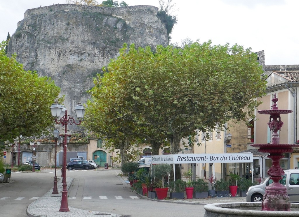 The image on the left above shows the walk from the river to the village of Viviers. Plane Trees as usual lined the road and it was a very impressive entry-way into the village. We passed through the village gates and found ourselves in the town square, the centre of town that was overshadowed by a large rocky outcrop which explained why the Romans originally decided it was a great spot for a camp. It also gave our group some idea of where we were going to walk given the town’s cathedral was up on top of the rocky outcrop.