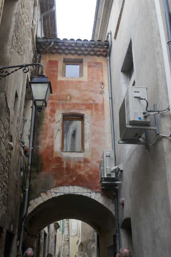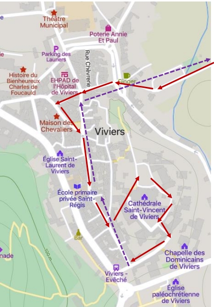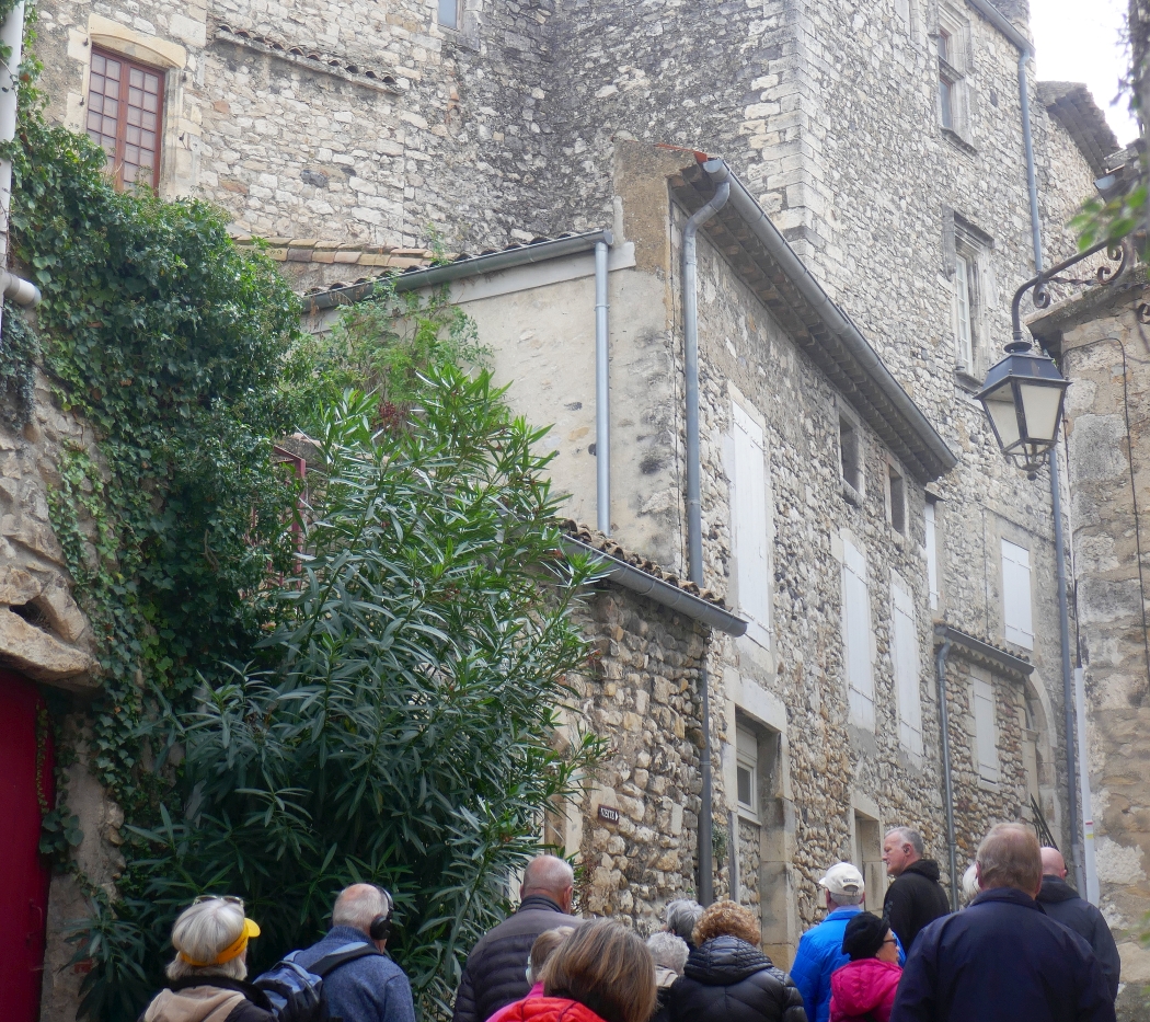Below right is an outline of our morning walk. Climbing the cliff face in the centre of town was not an option so our guide led us off at right angles which took us to the medieval centre of town with our first stop being on a corner where the ‘L’Hopital de Viviers’ was located.