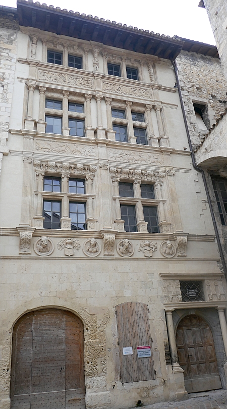 The Maison des Chevaliers was built by Noel Albert, a wealthy merchant of Viviers in the mid 16th century. He was involved in the Salt Trade and became renowned for his ability to avoid Government taxes. His house still stands today in Place Honore Flaugergues and its façade is what makes it famous. It is on four levels of ornate windows and associated sculptures.